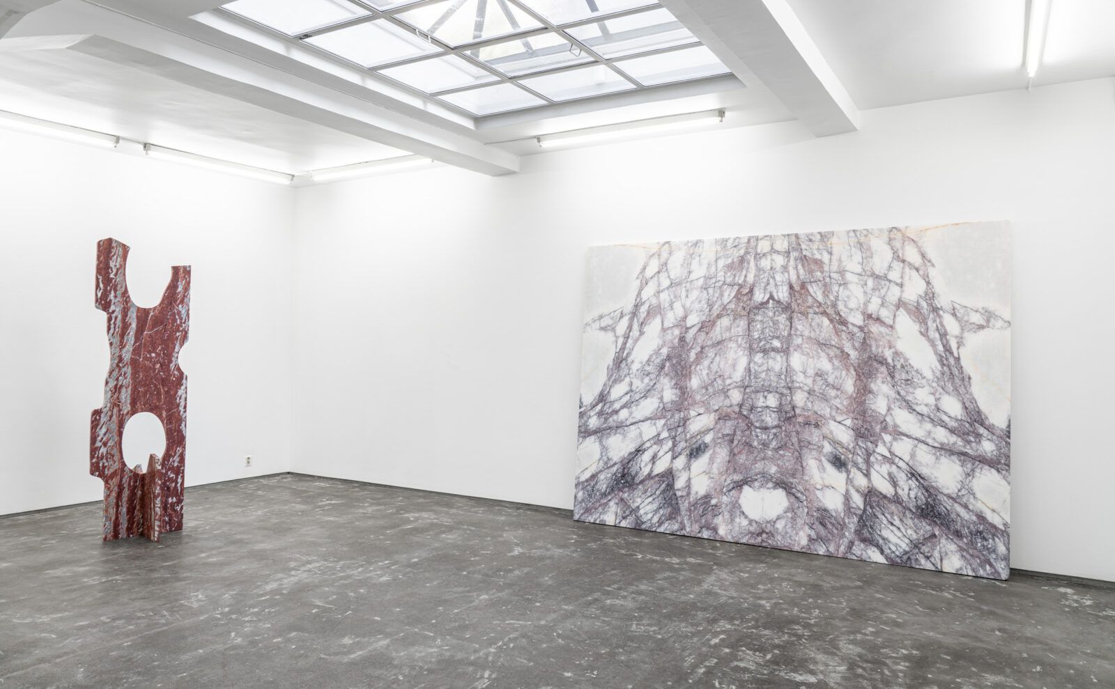 I time machines ved OSL contemporary utforsker Jone Kvie en førrasjonell forståelse av verden – en kosmologi der elementære krefter som ild, luft, vann og jord styres av kjærlighet og strid snarere enn abstrakte lover. Utstillingen er også et portrett av Napoli, der Kvie nylig har tilbrakt fem år: en palimpsest-by der historie og mytologi har sedimentert seg i både kjøtt og stein. Verkene beveger seg mellom det geologiske og det kroppslige. En massiv vulkansk stein hviler på metallbjelker og tvinger besøkende til å ta et skritt over den. Skulpturer i grå og rød marmor – et Pulcinella-ansikt fra commedia dell'arte, horisontale søyler, en klinisk baderomshylle – avleder materialets tradisjonelle funksjoner og setter geologisk tid opp mot menneskelig skala. I Kvies univers er marmor ikke et symbol på evighet, men et memento mori: sammenpressede dyrekadavre over millioner av år. Med en distinkt napolitansk sans for ironi minner utstillingen oss på at det banale – interiørdekor, kunstverk, kropp – bærer i seg tidsdybder vi knapt kan fatte.